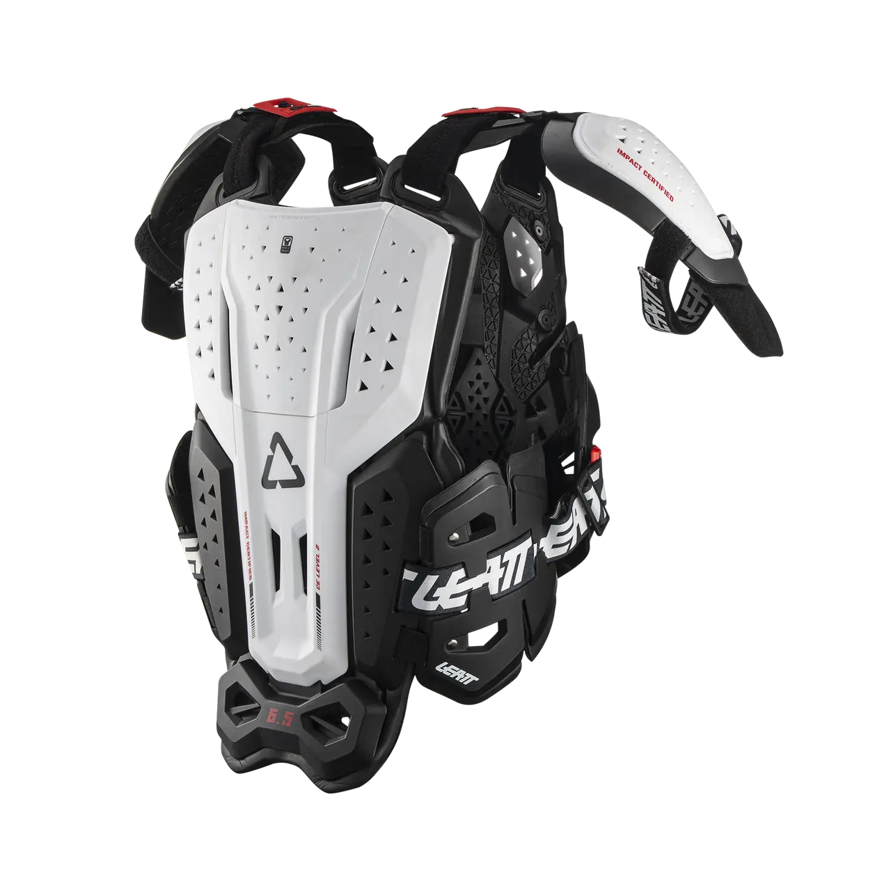 Новый панцирь 6.5 Chest Protector Pro получил агрессивный внешний вид, комфортную посадку и максимальную степень зашиты. Он сертифицирован по стандартам CE как защита от ударов груди, спины и плечей, которые гарантируют, что это лучший уровень защиты в линейке Leatt.